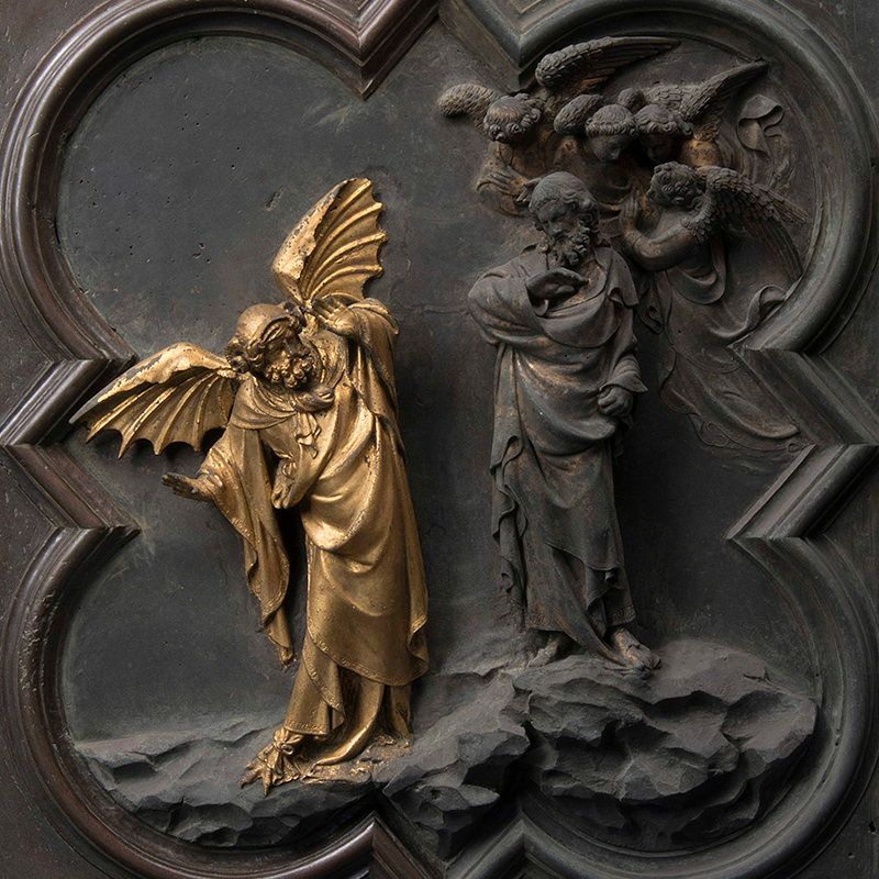 天堂之门是佛罗伦萨洗礼堂的东门,位于圣母百花大教堂前。它由金匠和雕塑家洛伦佐·吉贝尔蒂(Lorenzo Ghiberti)于1425年至1452年间创作,代表了他的杰作,也是佛罗伦萨文艺复兴时期最着名的作品之一。门由完全镀金的青铜制成,被米开朗基罗·博纳罗蒂昵称为"天堂之门"。