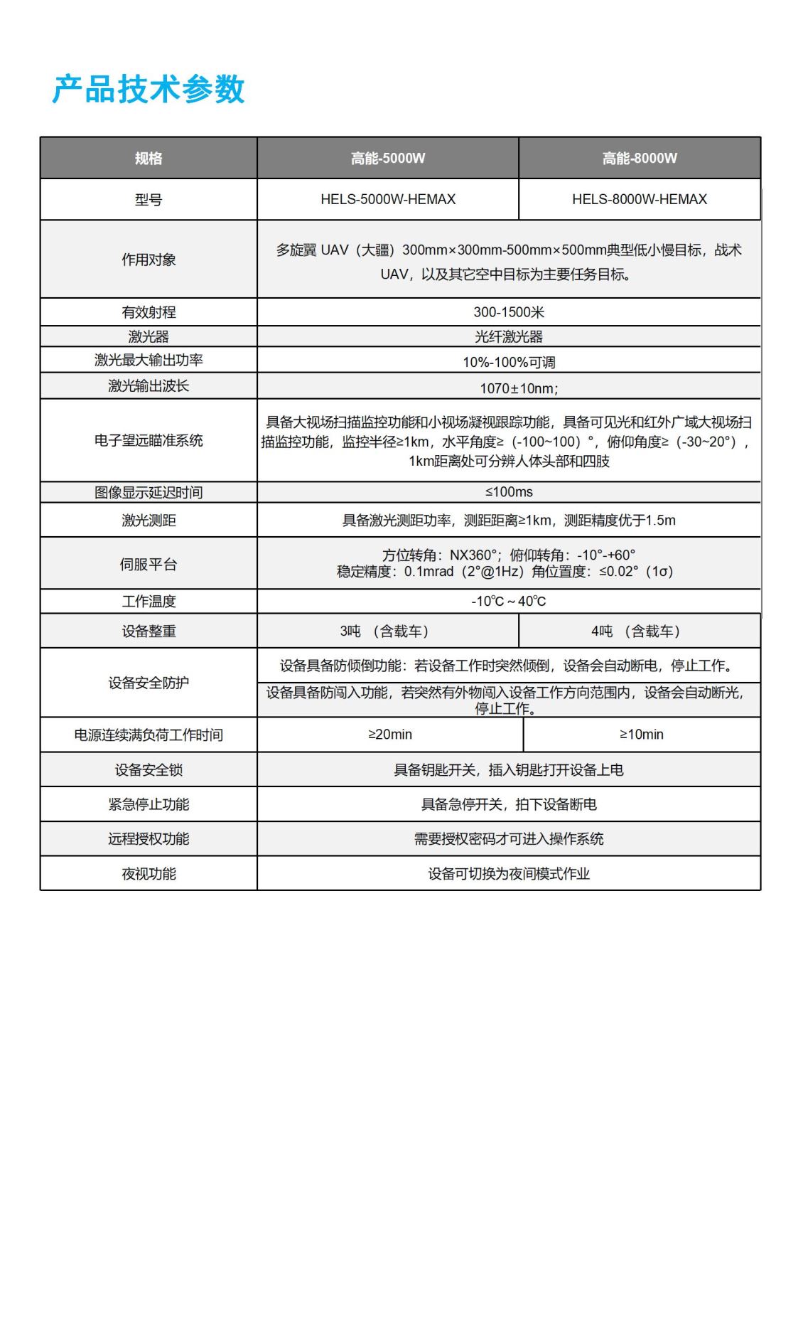 光学系统采用最先进非球面二元光学设计,通过提高激光器光束质量以及光学系统准直输出能力,提高激光毁伤打击效果。